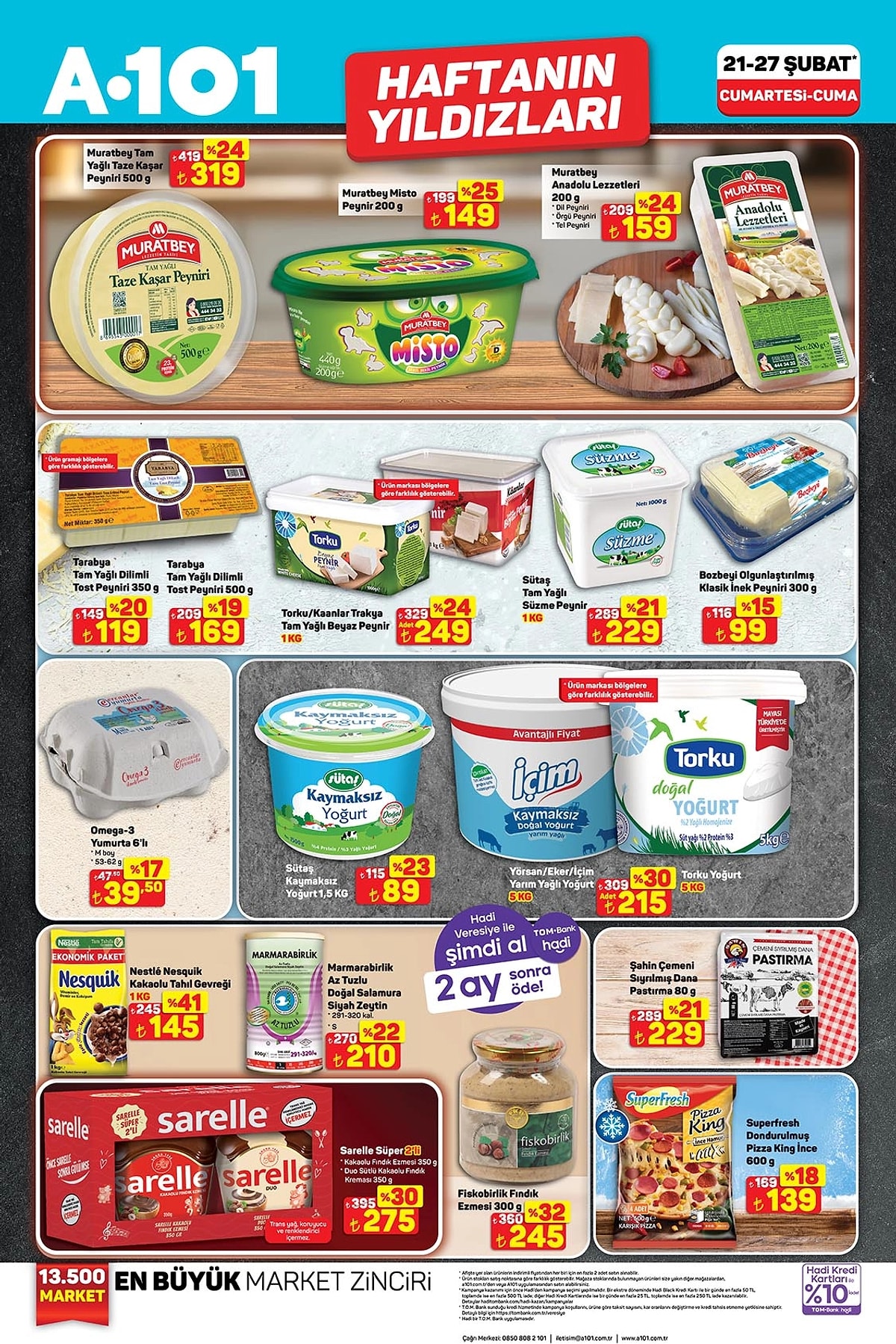 Bu hafta market alışverişi yapacaklar dikkat! 21 – 27 Şubat tarihleri arasında geçerli A101 Haftanın Yıldızları kataloğu açıklandı. Temel gıdadan temizlik ürünlerine, peynirden deterjana kadar birçok üründe dikkat çeken fiyatlar var.